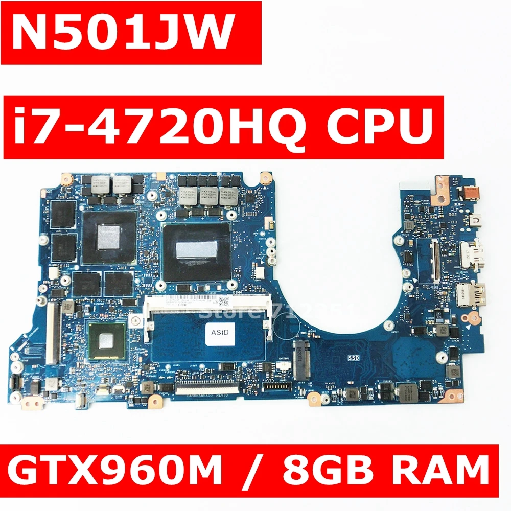SPECIAL OFFERS N501JW i7 4720HQ Processor CPU GTX960M 8GB RAM Mainboard For ASUS ROG N501JW UX501J G501J UX50JW FX60J laptop motherboard Online