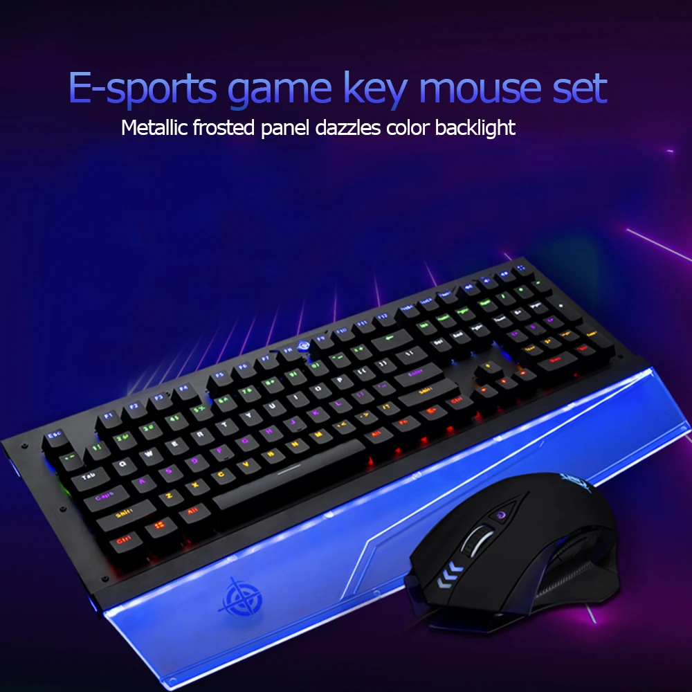 SPECIAL OFFERS MK8 Desktop Computer Keyboard Wired Blue Axis Glowing Game Keyboard Mixed Light Mechanical Game Keyboard Mouse Set Online