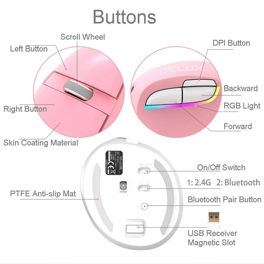 Dear my personal favorite Bluetooth 4.0 Delux M618 Mouse Wireless 2.4Ghz Rechargeable 2400DPI RGB Vertical Gaming Mouse Gamer Ergonomic Mice For PC Laptop RECOMMENDED TODAY