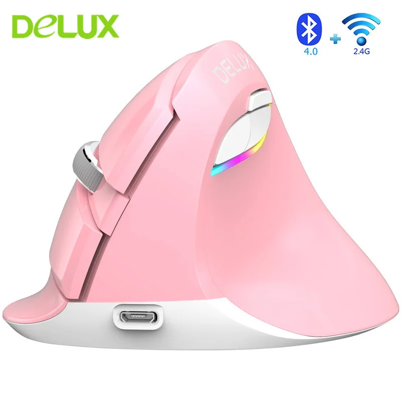 SPECIAL OFFERS Delux M618 Mini Ergonomic Vertical Mouse Bluetooth 4.0 + 2.4G Wireless Dual Mode Mouse Rechargeable USB Optical Pink Gaming Mice one of the best