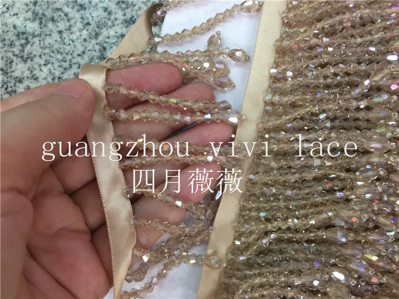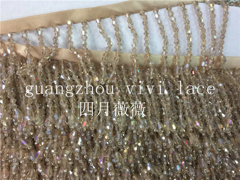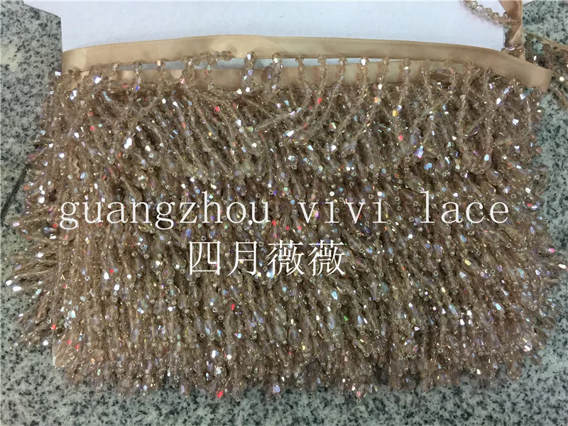 SPECIAL OFFERS 10 yards bag fs005# champange color crystal beads tassel fringe 5cm width for decoration dress fashion designer, one of the best