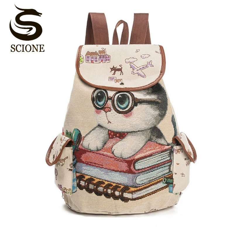 DISCOUNT my personal favorite Scione Cute Cat Backpack Women Girls Canvas Backpack Drawstring Printing Backpacks For Teenage Girls Large Capacity School Bag RECOMMENDED TODAY