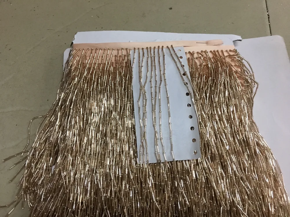 SPECIAL OFFERS stock 5yards bag YG024# 15cm Champagne gold Plastic bead tube DIY tassel ribbon used for costume stage decoration one of the best