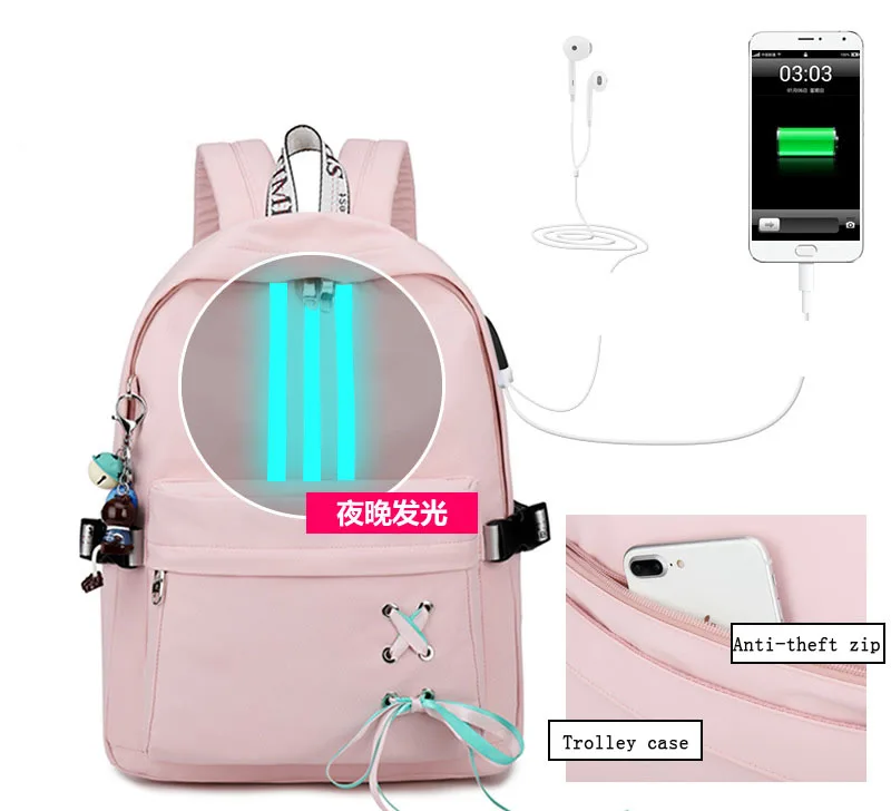 SPECIAL OFFERS Night Glow Strip Backpack for School Student Bag Youth Girl Backpack USB Headphone Jack Multi function Backpack one of the best