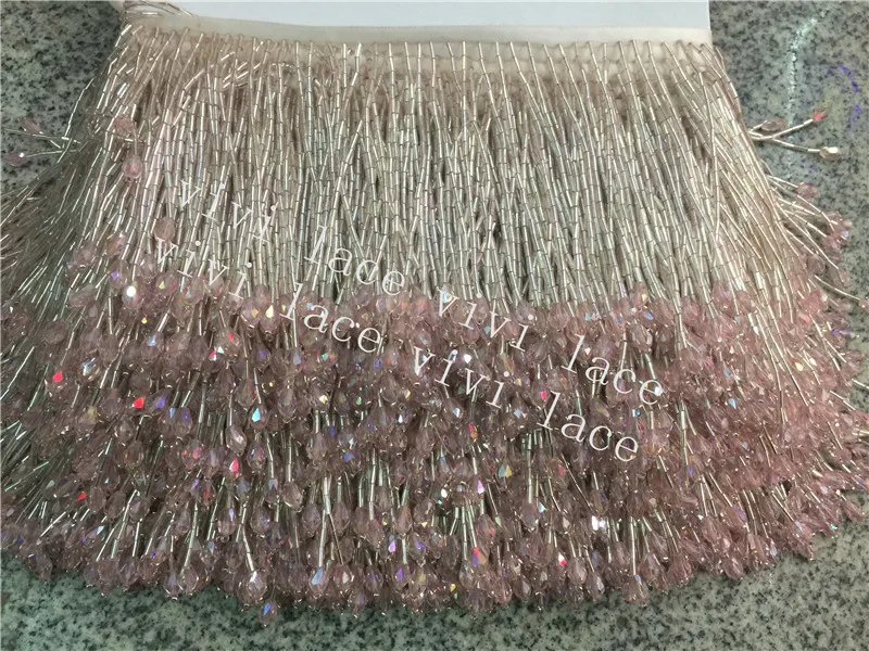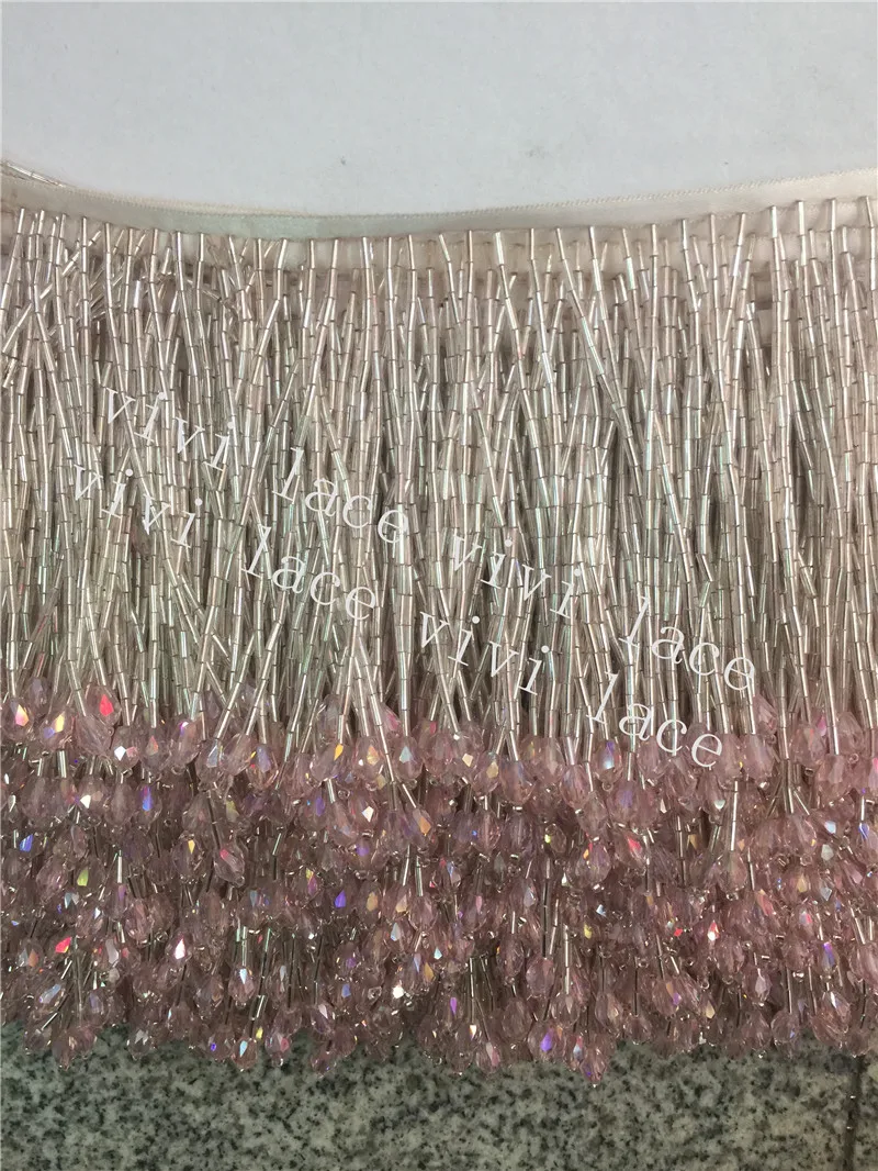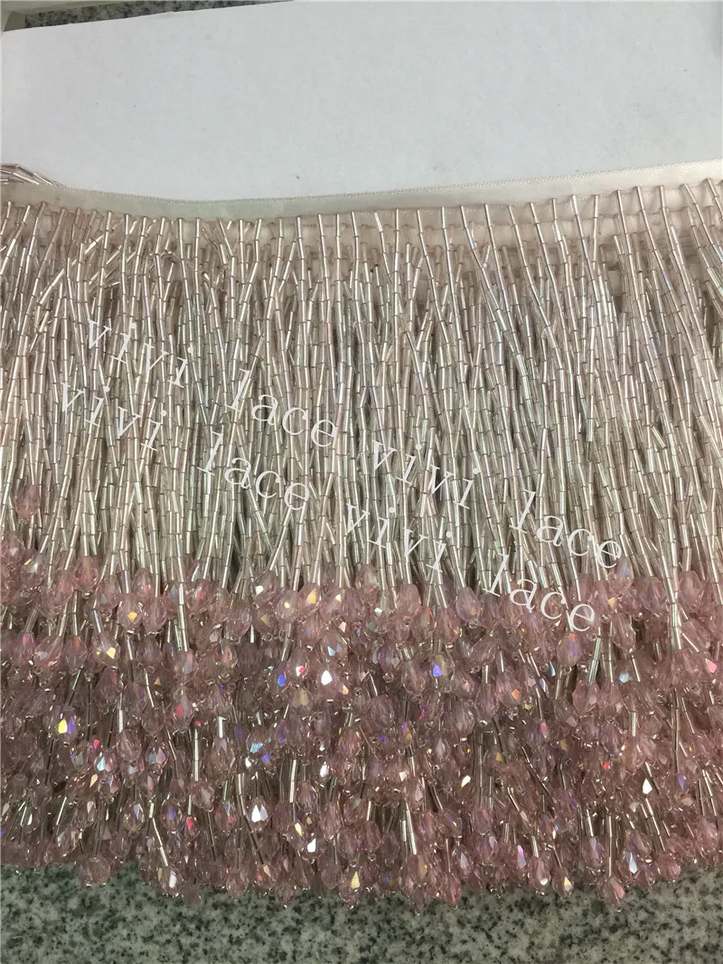Best Yy0025# 10 Yards bag Pink Ribbon Long Tube Beads Tassel Fringe 9 10cm Width For Sawing wedding fashion Designer bridal Gown RECOMMENDED TODAY BUY Now TODAY