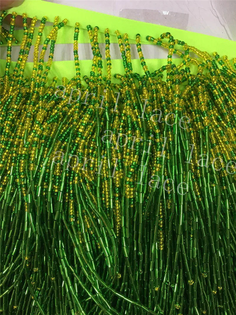 HOT OFFERS DX009# 5 Yards bag 11 14cm Yellow Mix Green Color Beads Satin Ribbon Fringe Tassel For Garment decorative wedding Dress HOT PRODUCT TODAY Best Price BUY Now LIMITED DISCOUNT