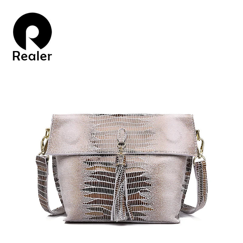 SPECIAL OFFERS REALER women messenger bags genuine leather Shoulder crossbody bag ladies handbags tassel serpentine female student small purse one of the best