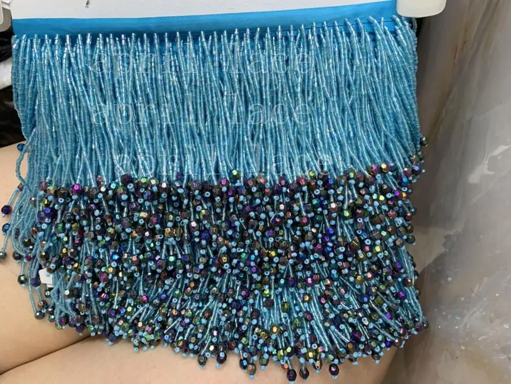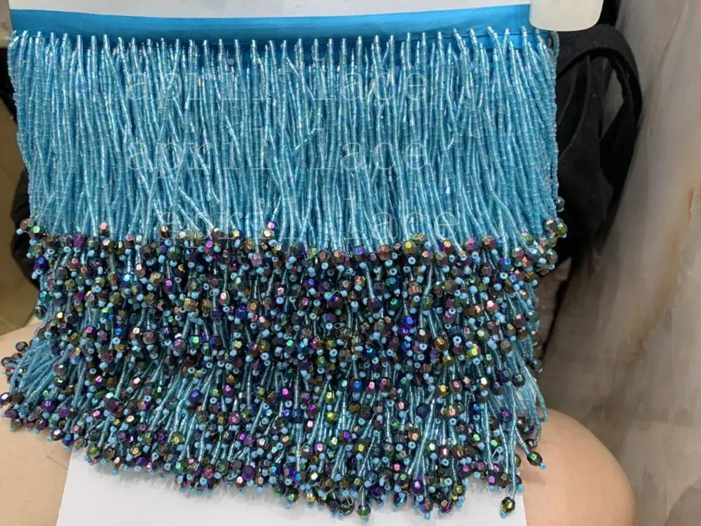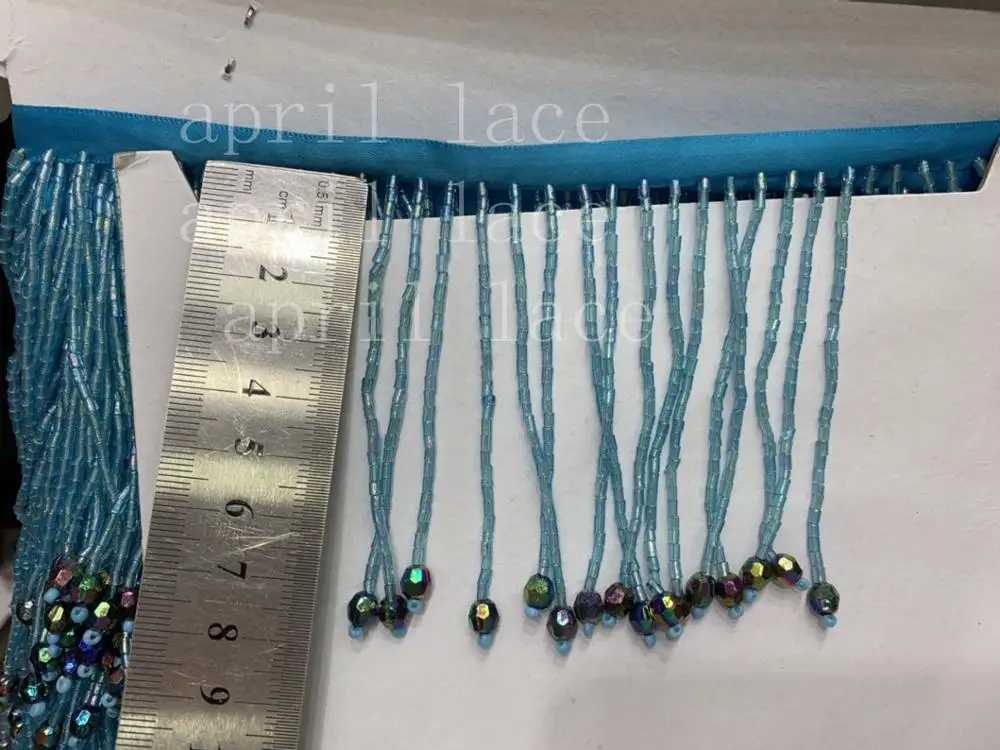 HOT OFFERS Cou006# 10 Yards bag 7cm Width Blue Colorful Pendents Beads Ribbon Fringe Tassel For Decorative wedding Bridal Ball Gown Dress Inexpensively Price HOT BUY Limited