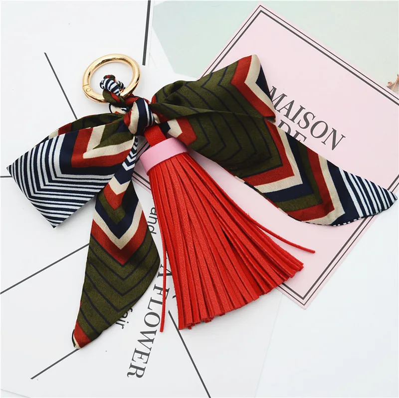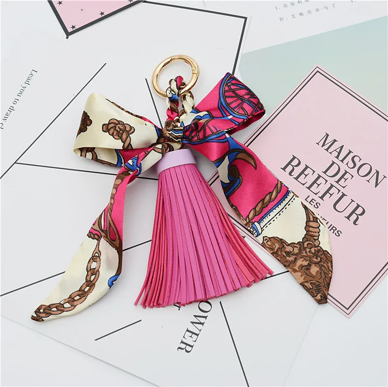 DISCOUNT my personal favorite High Quality Fashion Scarves Key holder Ribbon Bowknot Exquisite PU Leather Tassels Keychains Women Bag Charm Pendant RECOMMENDED TODAY