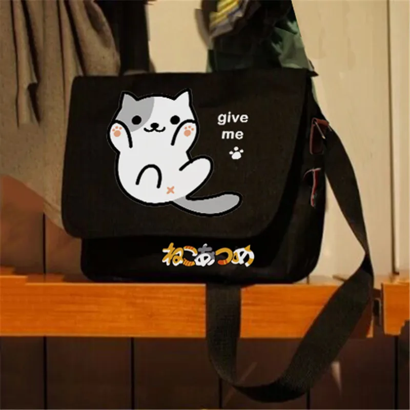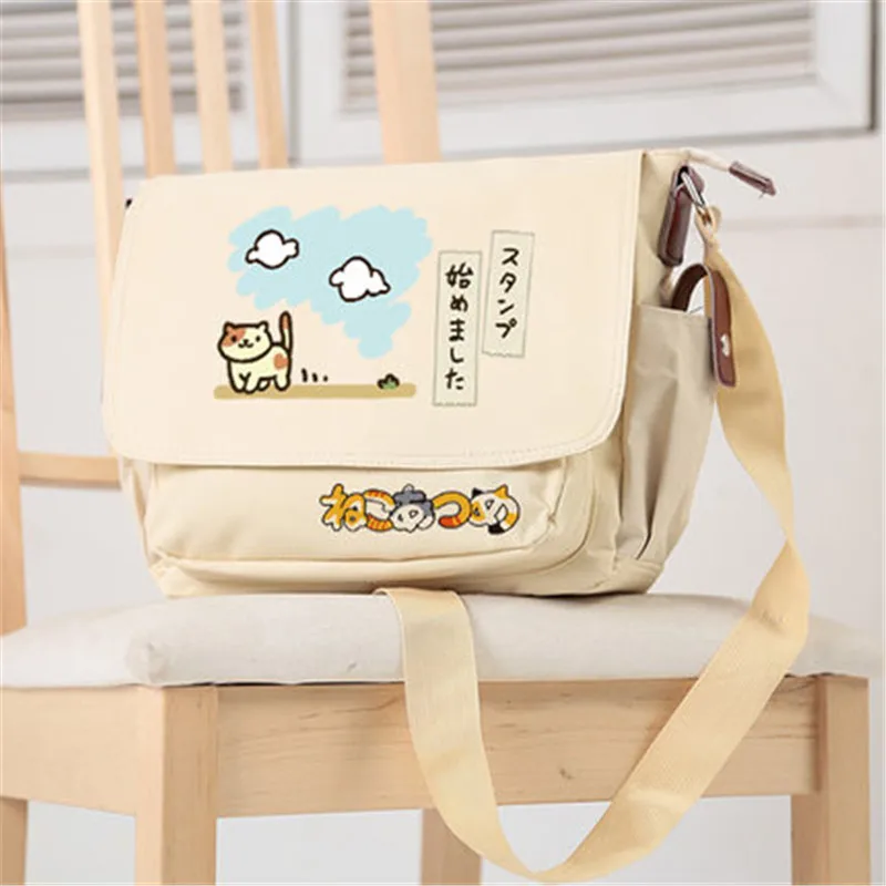 SPECIAL OFFERS Neko Atsume Kawaii Cat Canvas School Bags Lolita Crossbody Bags for Women Cute Shoulder Bags Women Messenger Bags Neko Bookbag Online