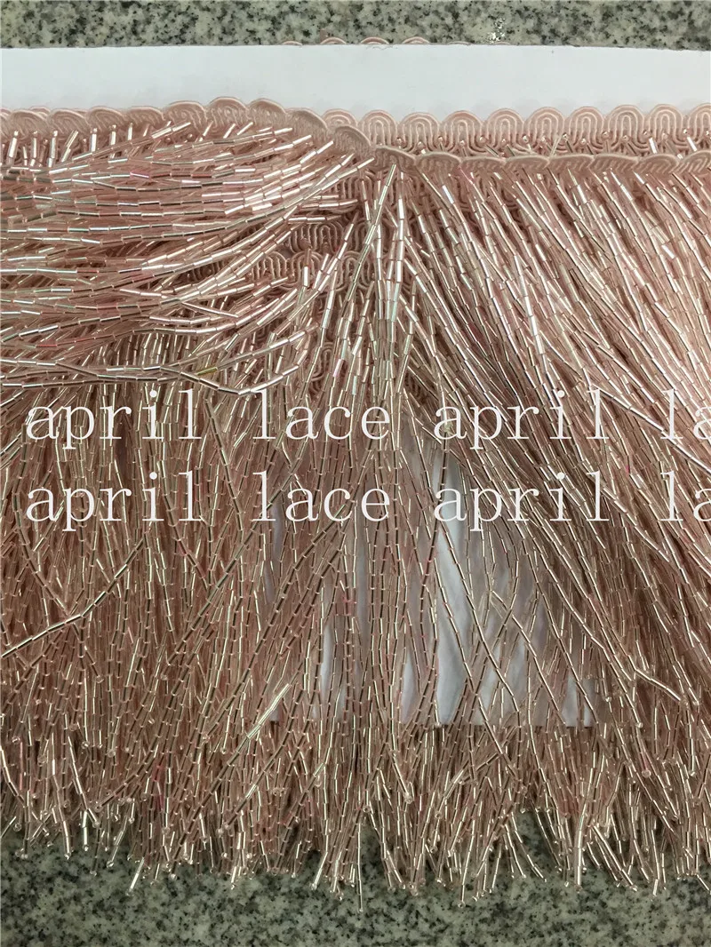 SPECIAL OFFERS A001 6 pink color 5 yards bag 14 15 cm width beads ribbon fringe tassel for garment decorative wedding bridal gown dress Online