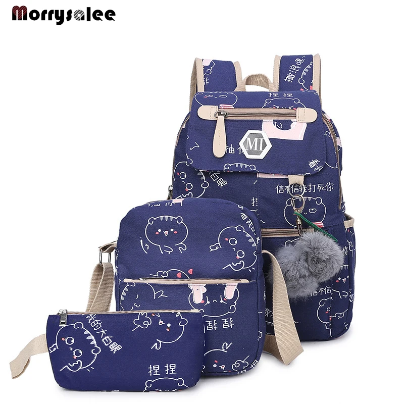 SPECIAL OFFERS 2019 USB Charging Canvas Backpack 3 Pcs set Women School Backpacks Schoolbag For Teenagers Man Student Book Bag Boys Satchel one of the best