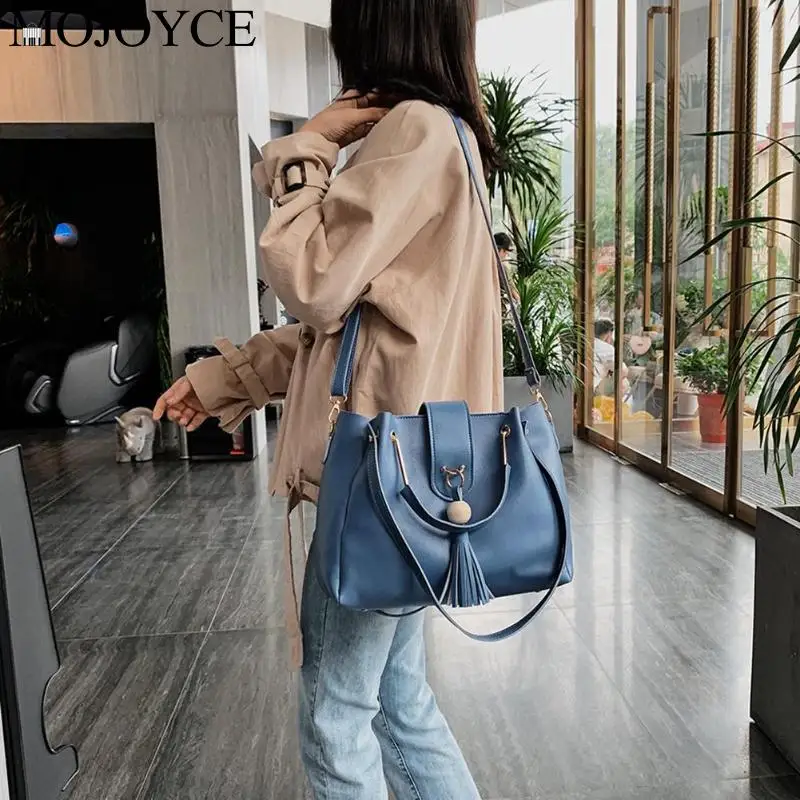 HOT OFFERS 3Pcs Multifunction Solid Color Women Handbag Set Leather Shoulder Tote Large Capacity Casual Lady Tassel Crossbody Bag Discount Online HOT SPECIAL PRICE Limited