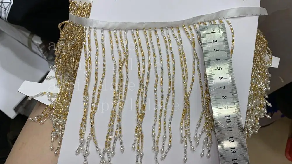 cheap Cou001# 10 Yards bag 12 13 Cm Width Golden Beads Ribbon Fringe Tassel For Garment decorative home wedding Bridal Gown Dress RECOMMENDED TODAY HOT OFFERS BUY Limited