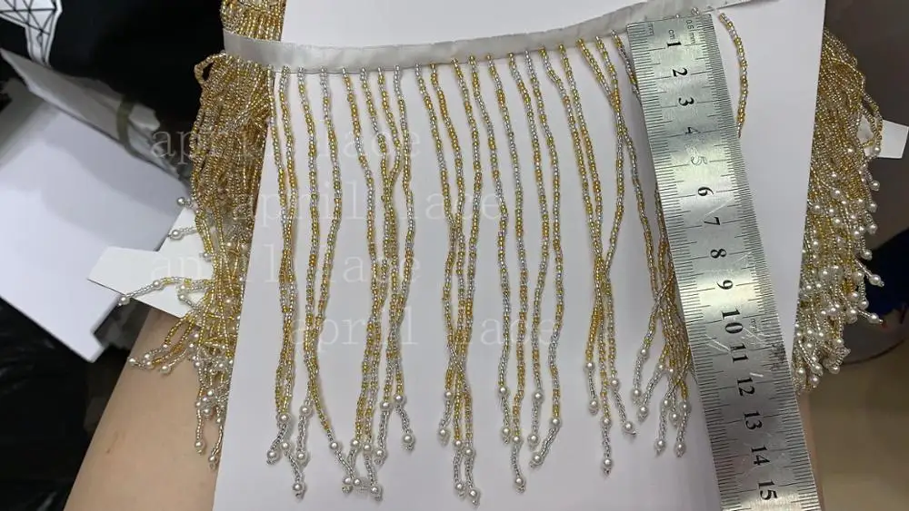 SPECIAL OFFERS cou001# 10 yards bag 12 13 cm width golden beads ribbon fringe tassel for garment decorative home wedding bridal gown dress one of the best