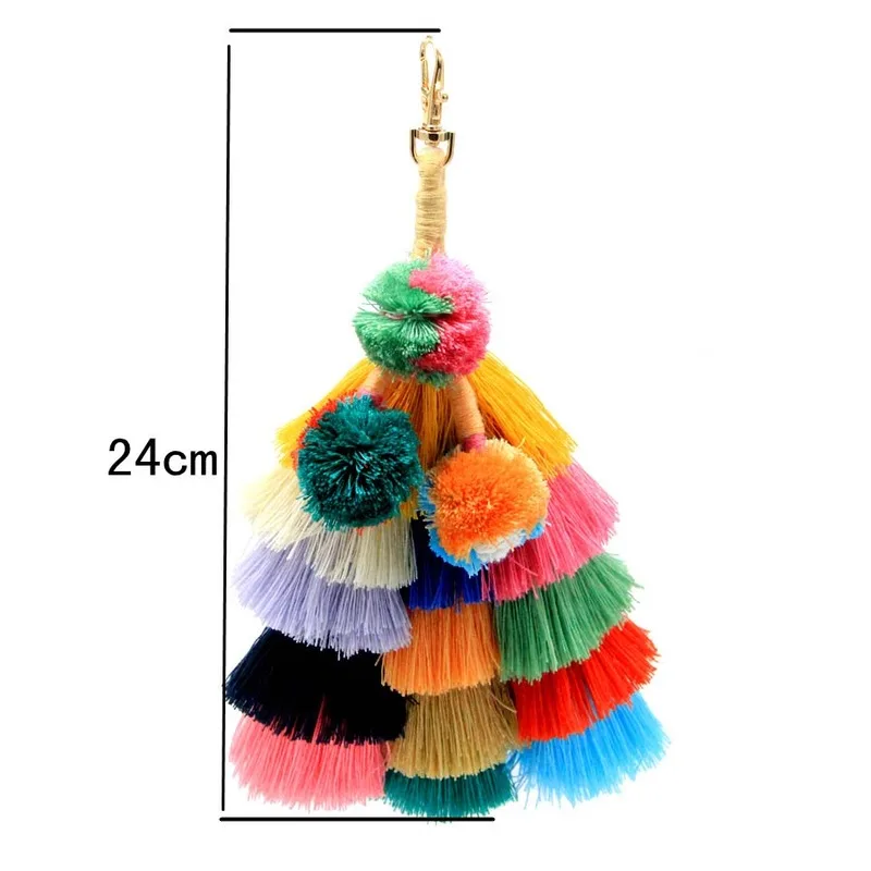 DISCOUNT my personal favorite Meetee 24cm Fringe Pendant Bohemian Handmade Cotton Tassels Bag Keychain Buckles Pendant Pompom Bag Tassel Key Ring Decoration RECOMMENDED TODAY