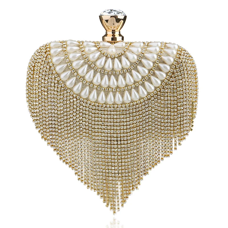 SPECIAL OFFERS GLOIG Tassel Rhinestones Clutch Beading Lady Evening Bags Diamonds Small Purse Chain Shoulder Handbags Wedding Party Evening Bag Online
