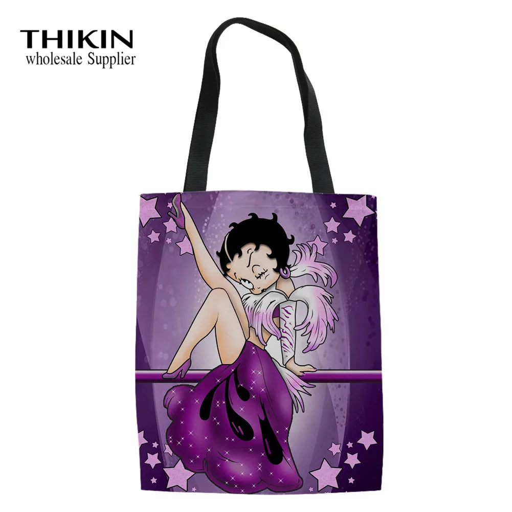 DISCOUNT my personal favorite THIKIN Custom Betty Boop Women #039;s Casual Tote Daily Use Single Shoulder Shopping Bags Cartoon Female Cotton School Book Bags RECOMMENDED TODAY