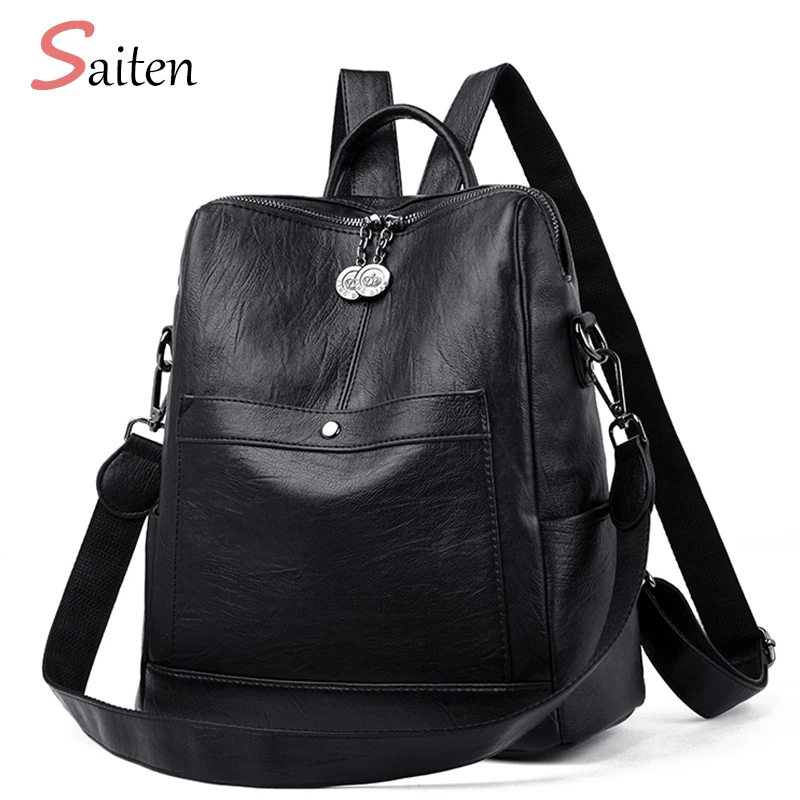 DISCOUNT my personal favorite Saiten High Quality Leather Woman #039;s Backpack New 2019 Fashion Backbag Female Large Capacity School Bag Mochila Feminina RECOMMENDED TODAY