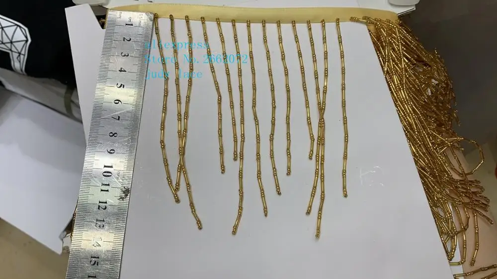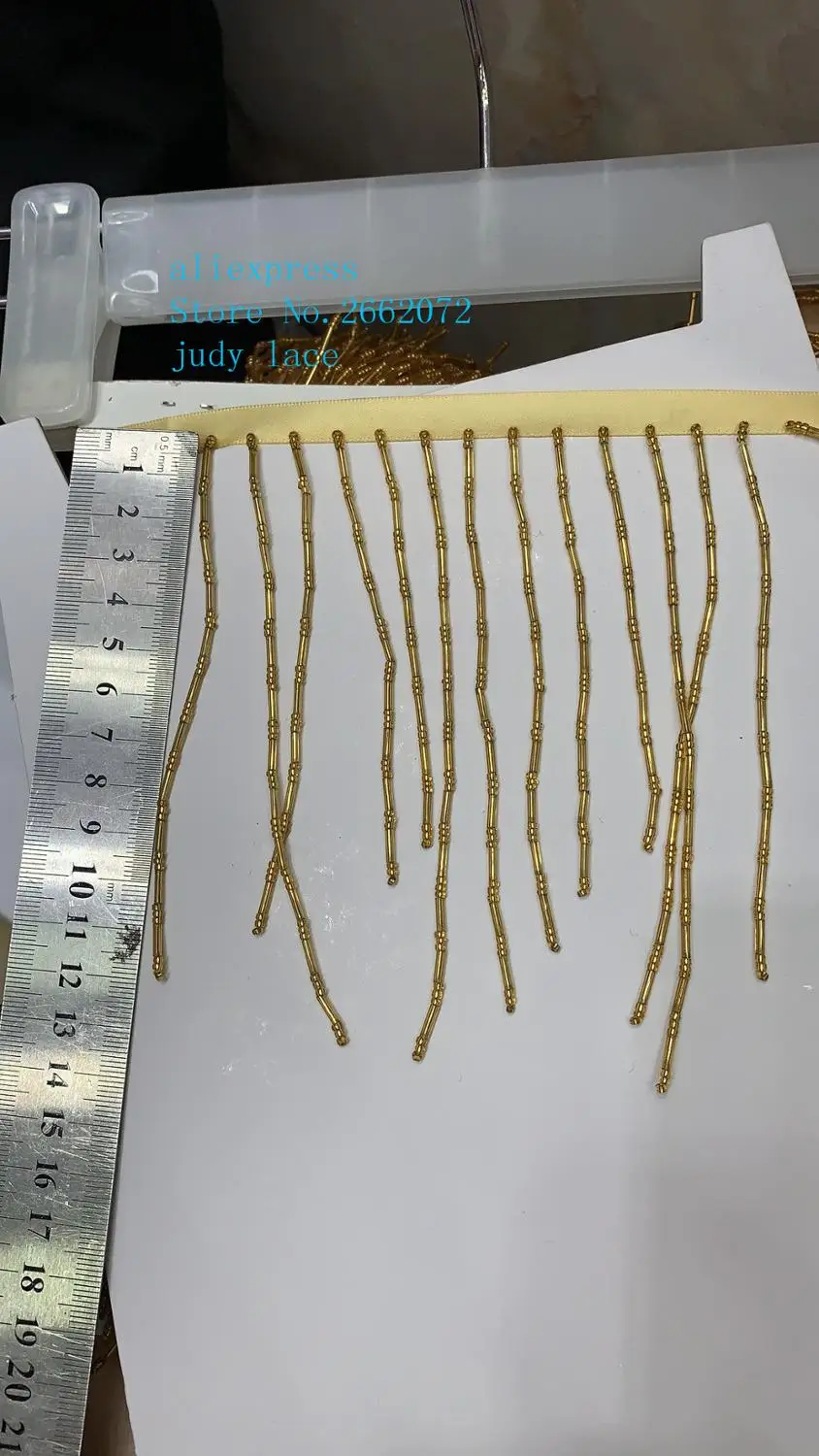HOT OFFERS Stock 10yard bag 8 13cm Gold Wavy Beaded Tube Tassel Ribbon For Fashion Design Stage Decoration Ym211# Promo Best Price HOT BUY Limited